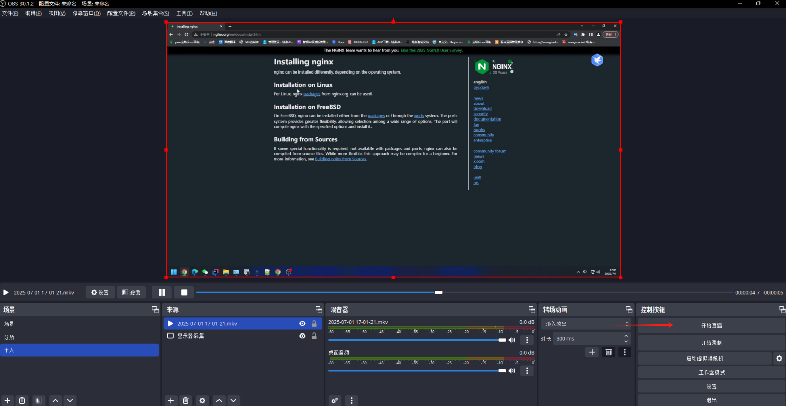 点击播放,即可观看由OBS直播的视频了。