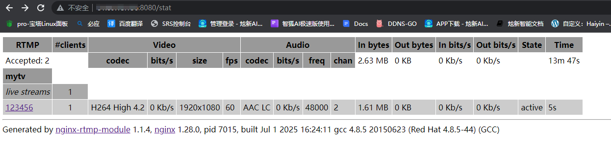 至此,nginx+rtmp实现流服务器完成。
