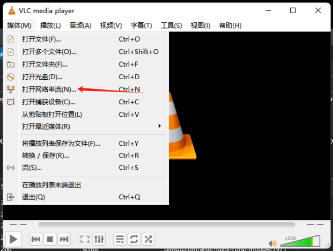 媒体->打开网络串流