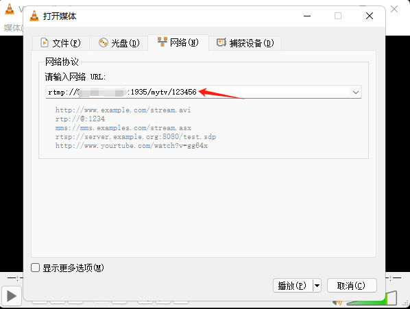 填入我们的视频流的地址